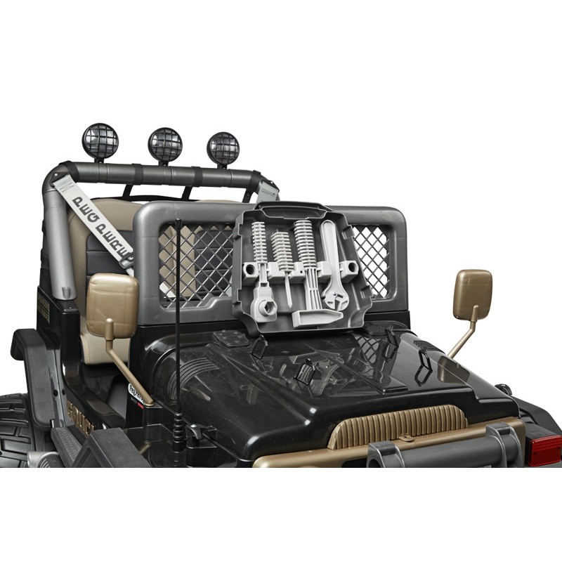 Angetrieben wird der Geländewagen von einem 24 V Elektromotor, der über ein Gaspedal angesteuert wird. Mit zwei Vorwärtsgängen kann der Geländewagen bis zu 7,5 km/h schnell fahren. Der zweite Gang kann bei Bedarf anfänglich für unerfahrenere Kinder mechanisch gesperrt werden, so dass nur im ersten Gang mit gedrosselter Geschwindigkeit gefahren werden kann. Dank Rückwärtsgang lernen die kleinen Nachwuchspiloten das Rangieren von Fahrzeugen bereits in jungen Jahren. Das Gaspedal dient gleichzeitig als Bremse – sobald man vom Pedal geht, blockieren die Räder und das Fahrzeug kommt zügig zum stehen.