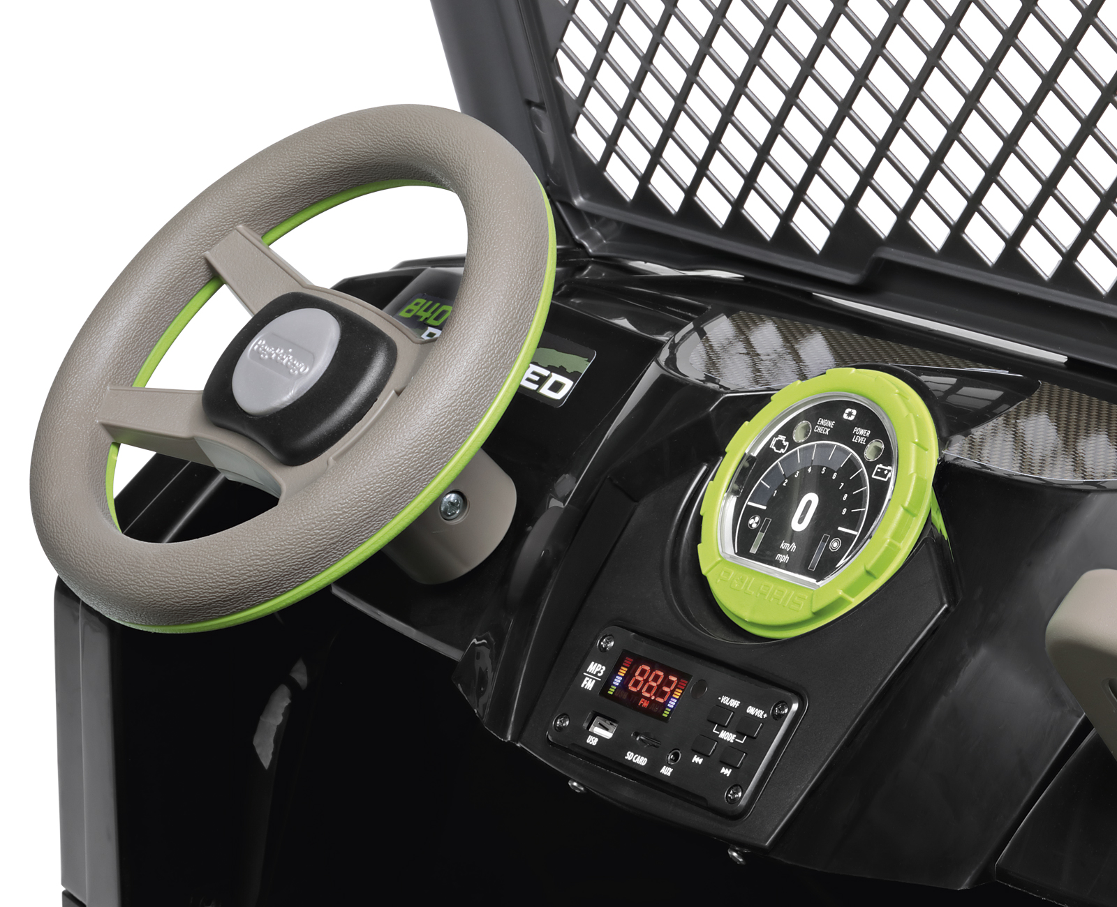 Der RZR PRO GREEN SHADOW ist ein leistungsstarker Geländewagen mit einem wiederaufladbaren 24Volt/12AH/300Wh Akku, der bereit ist, jedes Abenteuer zu bewältigen!