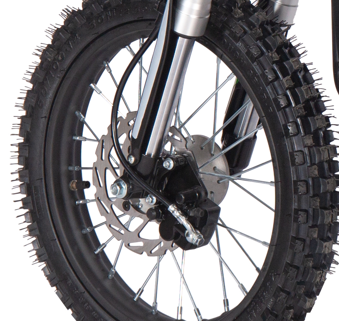 12 Zoll Luftbereifung hinten und 14 Zoll Luftbereifung vorne auf stabilen Metallspeichenfelgen, hydraulische Scheibenbremsanlage und Federung sind selbstverständlich.