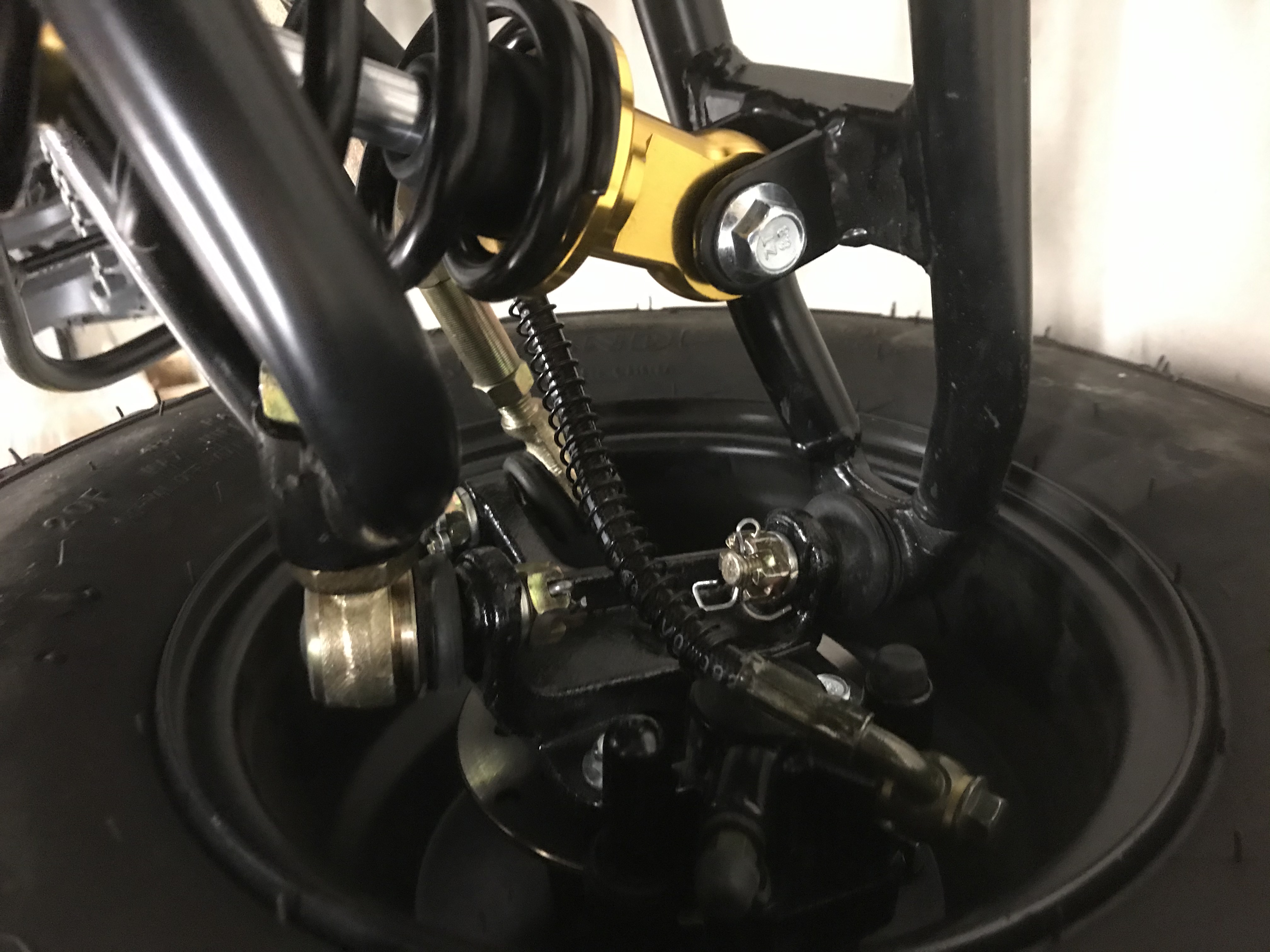Gebremst wird das Quad an allen 4 Rädern durch hydraulische Scheibenbremsen. Billige Seilzüge sind hier fehl am Platz.