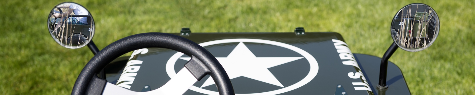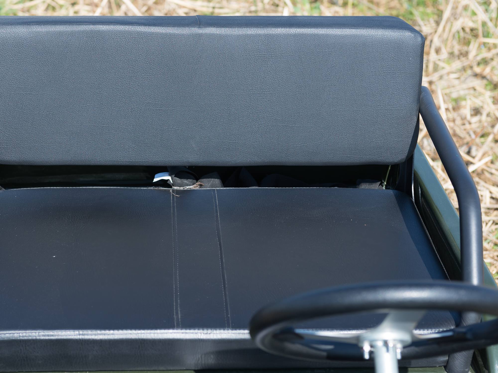 Selbstverständlich wurde auch an die Sicherheit gedacht. Daher wurde der Jeep mit Rückhaltegurten für Fahrer und Beifahrer sowie Reeling zur seitlichen Sicherung ausgestattet.