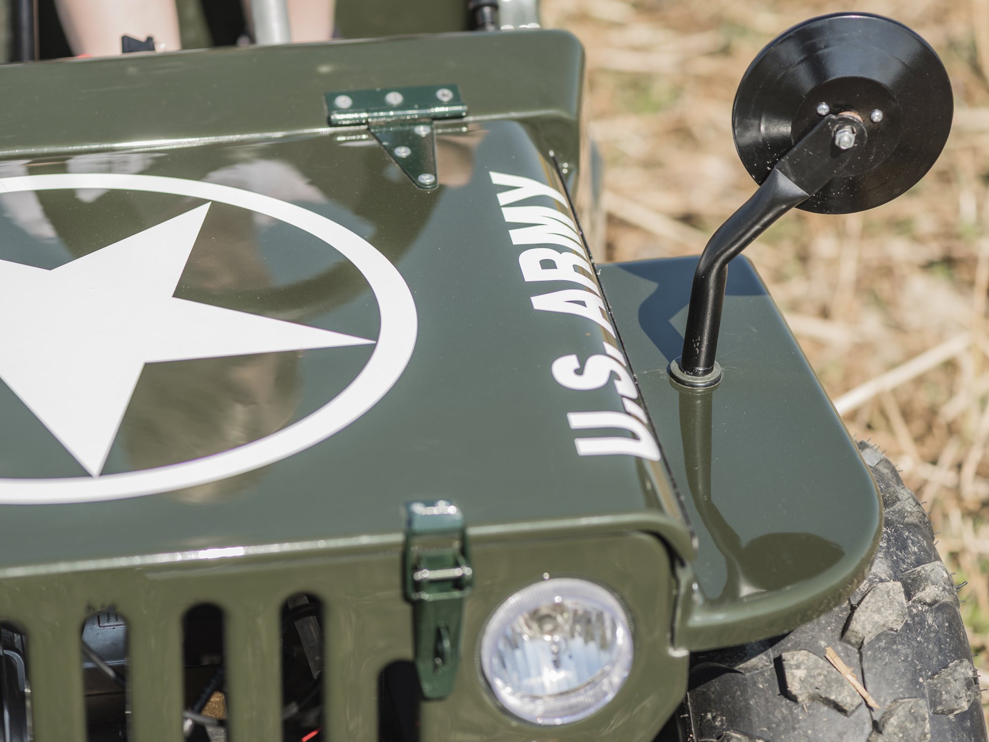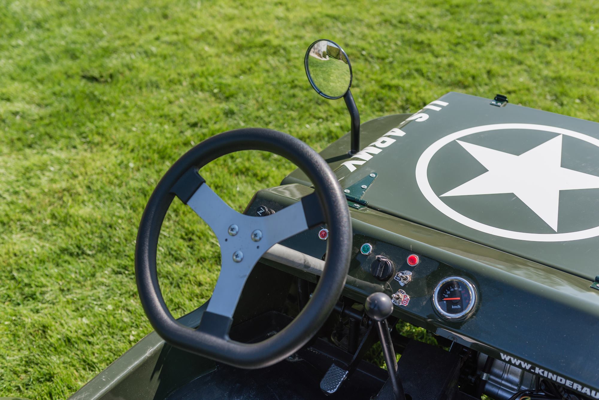 Ausgestattet ist der Military Jeep mit dem praktischen Halb-Automatiggetriebe (keine Kupplung) mit 3 Vorwärts und einem Rückwärtsgang.